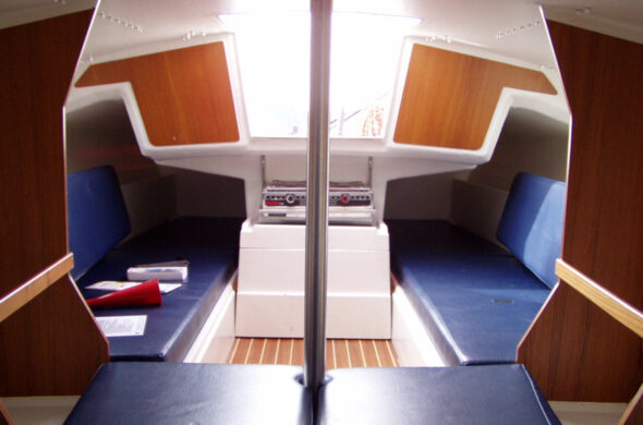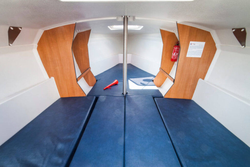 Ook onderdeks biedt de Fox 22 verrassend veel comfort. In de kajuit is ruimte voor vier volwassenen, met vier comfortabele kooien en een praktische indeling. Het ontwerp is bewust eenvoudig gehouden: veel ruimte op dek en in de kuip, en een sobere uitrusting gericht op zeilplezier zonder overbodige luxe. De filosofie achter dit ontwerp is helder: minder techniek betekent minder onderhoud, minder kosten en meer tijd om te varen.